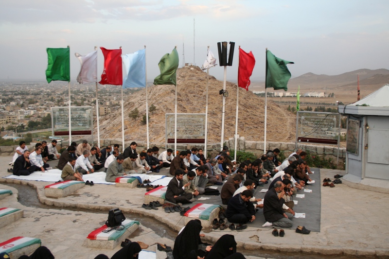 تصویر مربوط به مراسم دعا در حرم مطهر شهدای گمنام کوه سنگی مشهد مقدس است.