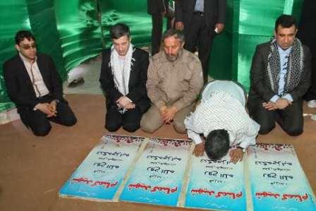 احمدینژاد از مقبره هشت شهید گمنام مدفون در محل این یادمان زیارت کرد و ضمن قرائت فاتحه برای شادی روح آنها و همه شهدای دفاع مقدس انقلاب اسلامی دعا کرد.