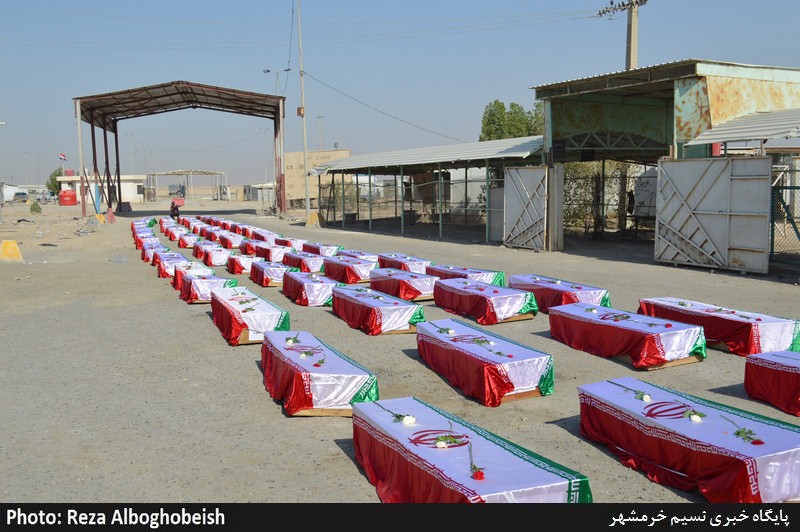 پیکر مطهر 76 شهید دوران دفاع مقدس از طریق مرز شلمچه وارد کشور شد+تصاویر
