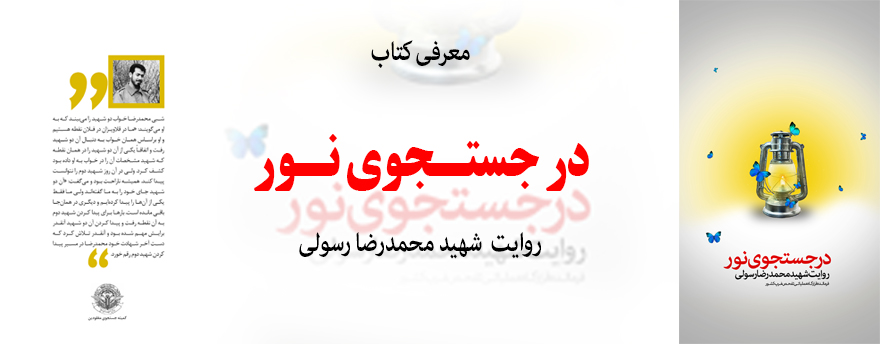 به گزارش پایگاه فرهنگی و اطلاع رسانی تفحص شهدا، به مناسبت بیست و یکمین سالگرد شهادت جستجوگر نور شهید محمدرضا رسولی از کتاب "در جستجوی نور" رونمایی گردید.
