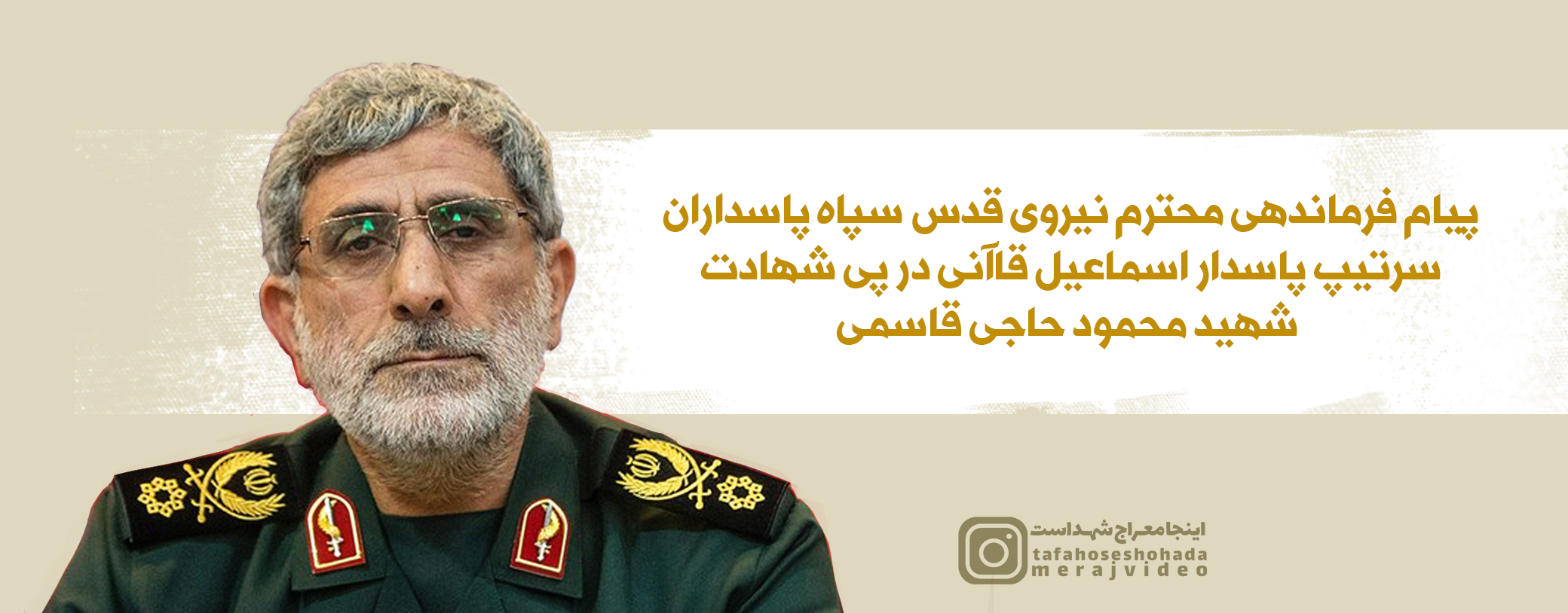 پیام فرماندهی محترم نیروی قدس سپاه پاسداران سرتیپ پاسدار اسماعیل قاآنی، در پی شهادت شهید محمود حاجی قاسمی