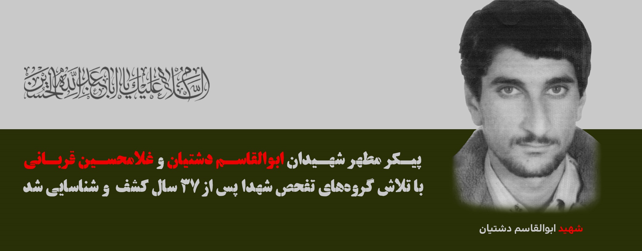پیکر مطهر دو تن از شهدای دوران دفاع مقدس، شهیدان ابوالقاسم دشتیان و غلامحسین قربانی با تلاش گروه‌های تفحص شهدا کشف و شناسایی گردید