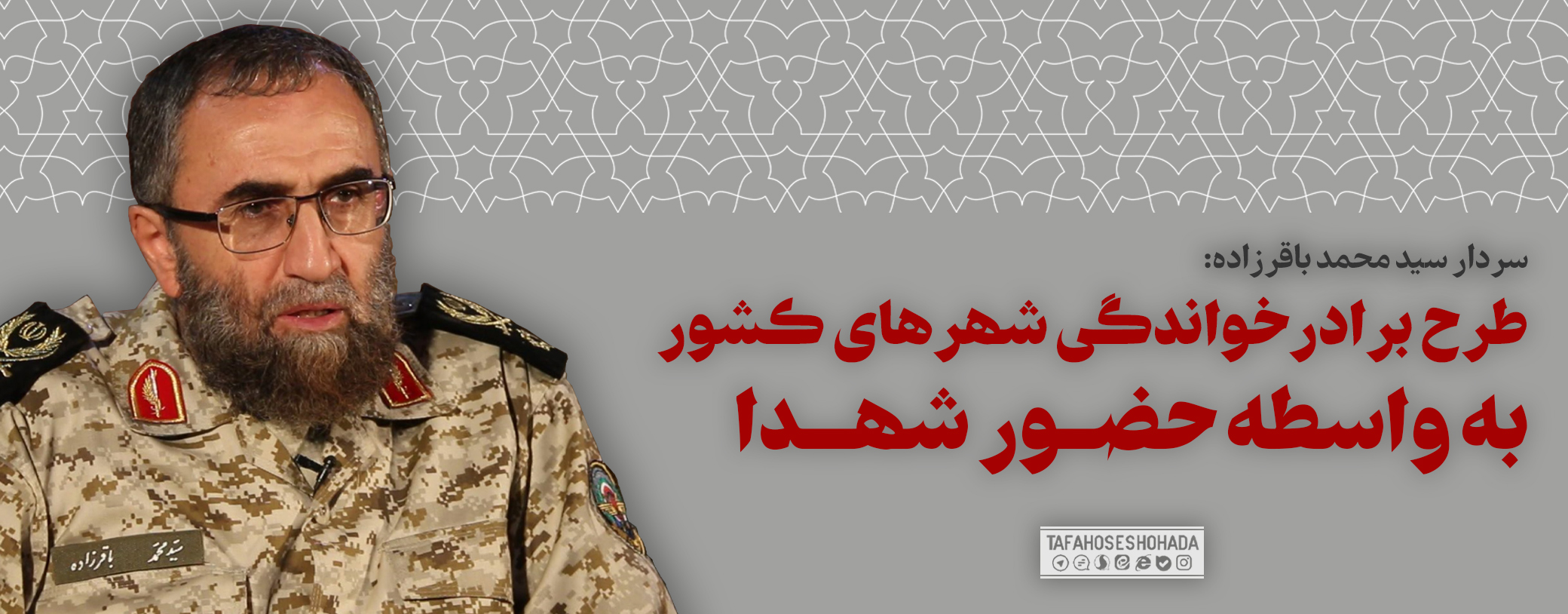 سردار «سید محمد باقرزاده» فرمانده کمیته جستجوی مفقودین ستاد کل نیروهای مسلح امروز در گفتوگو با خبرنگار دفاع پرس در اهواز، از پیشنهاد طرح برادرخواندگی شهرهای دارای شهید مشترک در کشور خبر داد و اظهار داشت: در پی اتفاقات خوشایند، حماسی و البته احساسی اخیر که پیکر مطهر چند شهید پس از سالها شناسایی شدند و خانوادهها رضایت دادند که فرزندان شهیدشان در شهرهای تدفین شده بمانند، پیشنهاد دادیم که طرح برادرخواندگی بین این شهرها منعقد شود.